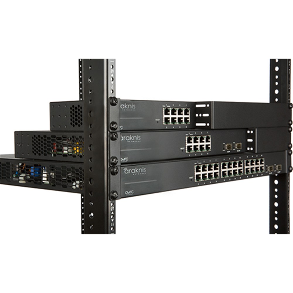 • Mounting Notice - This switch ships with left-justified rack ears. Visit the corresponding product page to order center-justified ears.