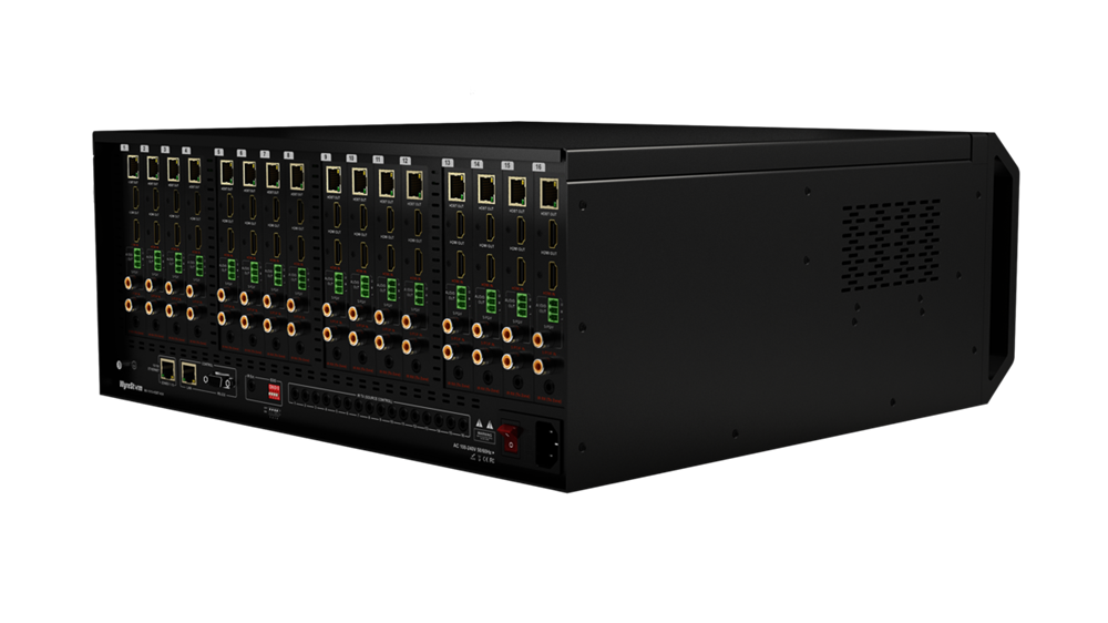 16-SLOT UHD-READY MATRIXThis 16x16 custom matrix chassis is built to your custom specification from a range of TX-H2X transmission cards, allowing hundreds of variations at your disposal.