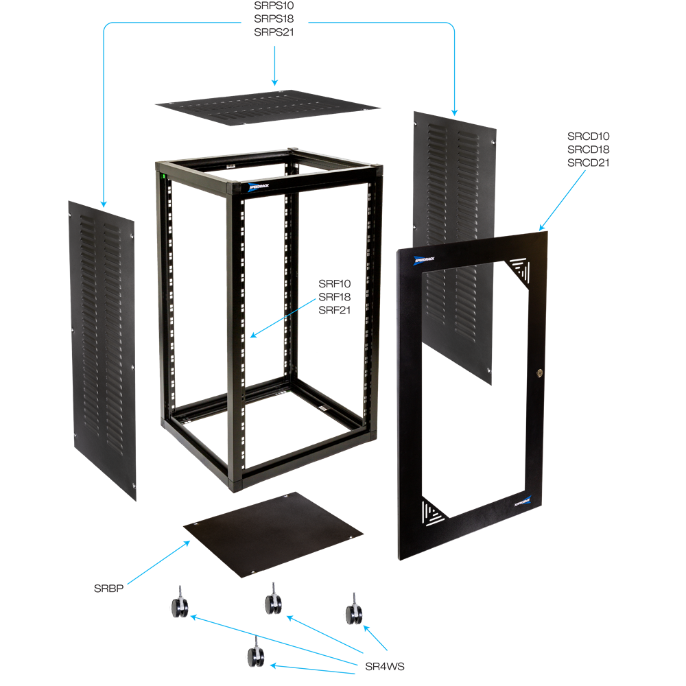 All Speedracks racks are supplied with the necessary hardware and cage nuts/bolts (racks are standard 19" product mounting).