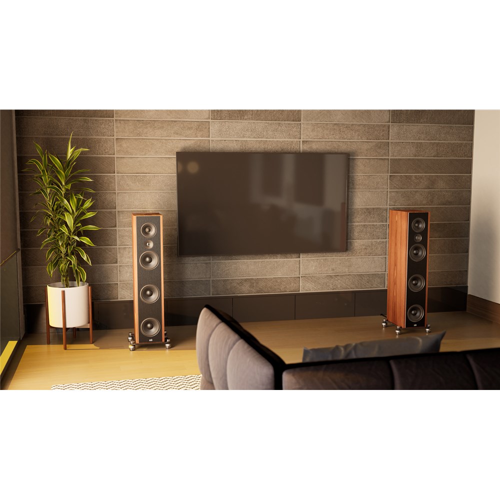 At the base of each T600 Tower are four outrigger stabilizers with custom isolators based on IsoAcoustics’ award-winning Gaia II isolators. These prevent mechanical energy produced by the drivers and cabinet from being reflected back into the enclosure. The result is improved micro-detail, clearer transients, a wider soundstage, and more precise imaging.