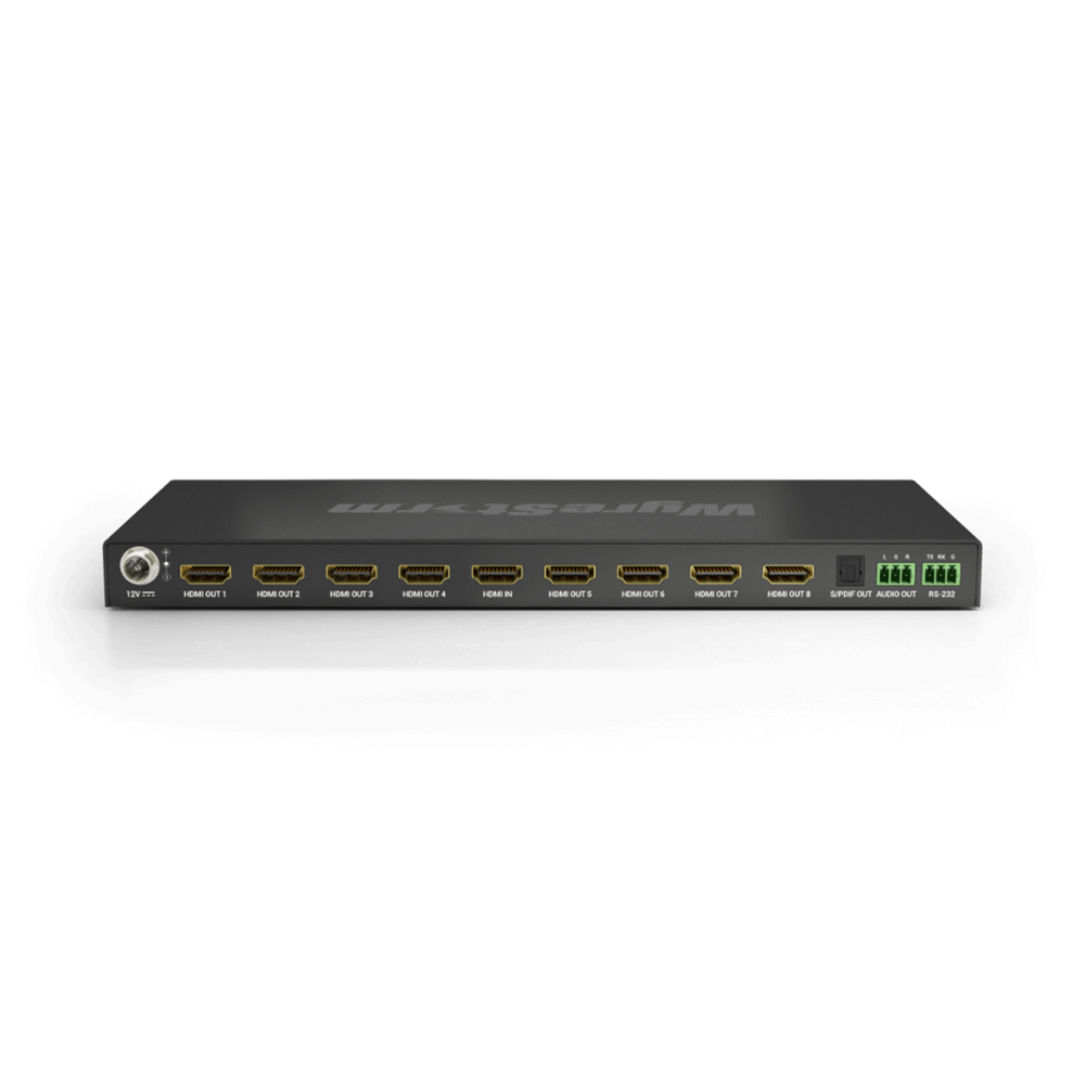 CEC TRIGGERINGWorking automatically on signal presence or triggered via the API, this 1×8 splitter can send power trigger commands to all compatible connected screens or projectors, meaning an integrated autonomous control solution.