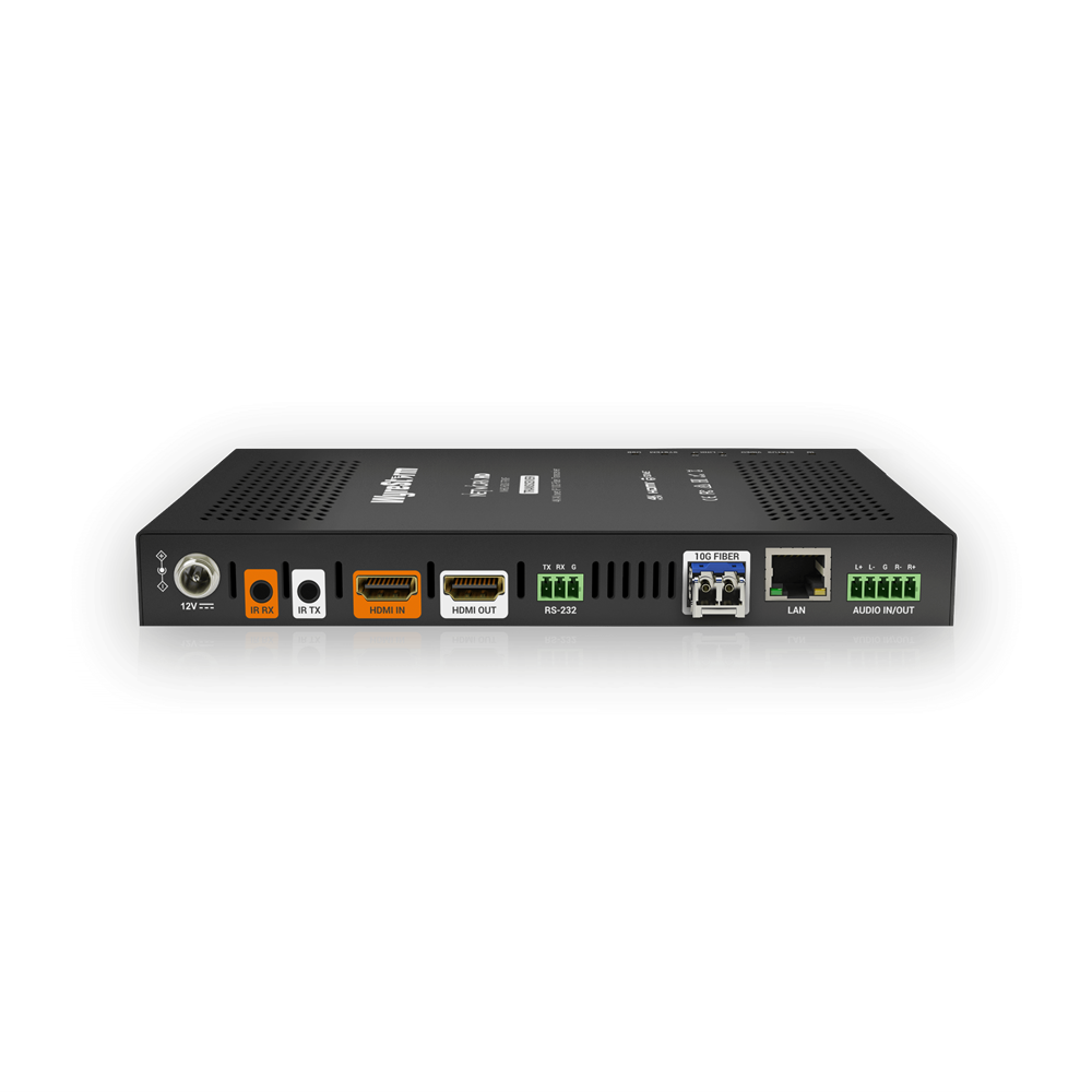 The NHD-600-TRXF is a SDVoE fiber transceiver capable of lossless & latency-free 4K60 over a 10Gb network. The TRXF allows you to transmit and receive A/V simultaneous through a single device or be programmed to act as a dedicated TX or RX. The SFP+ connector supports up to 300m (984ft), 10Gbps transmission distance for extremely long reach commercial applications. 3 x High-Speed USB 2.0 ports allow extension for keyboard & mouse applications and even compatibility with webcams, touchscreens, and media storage.