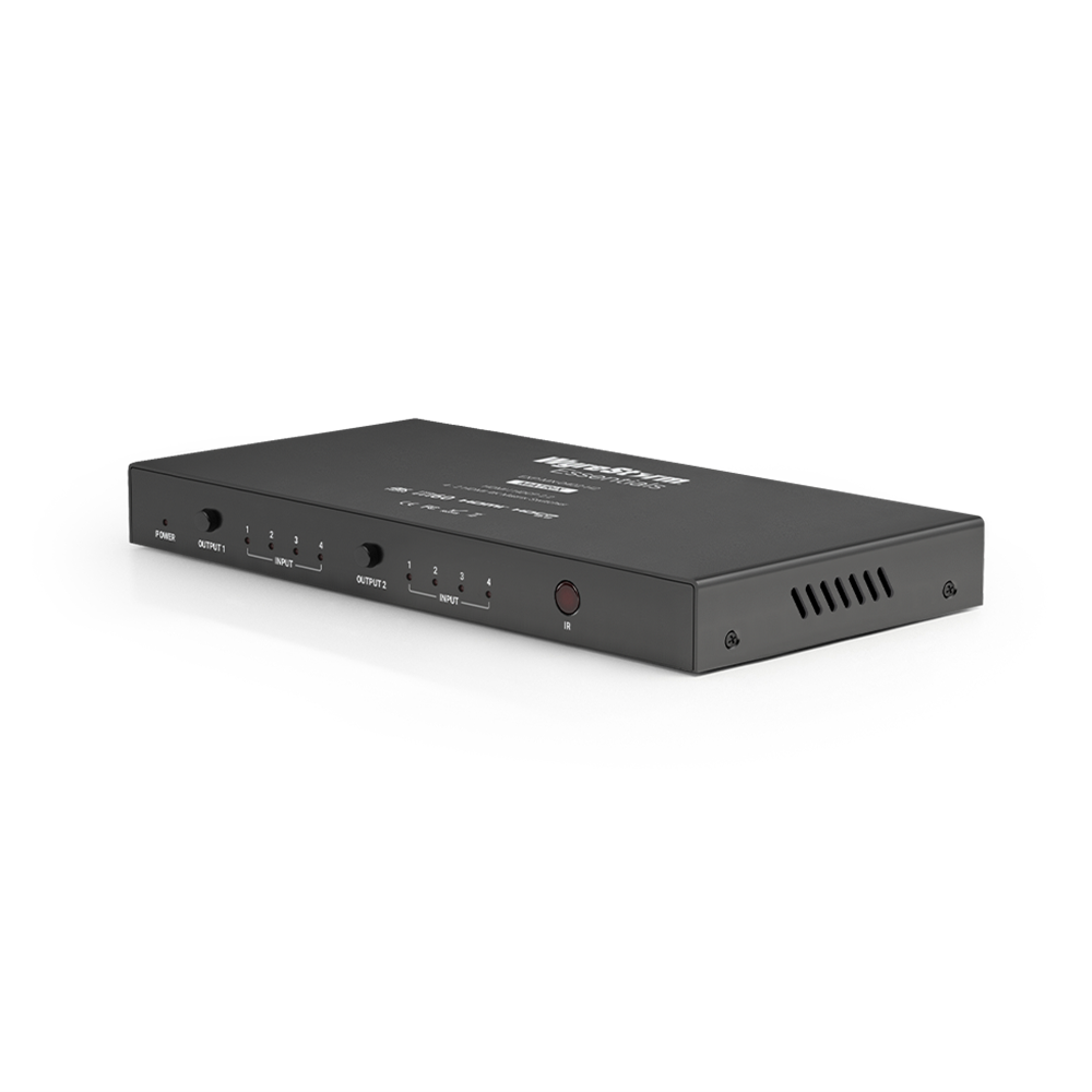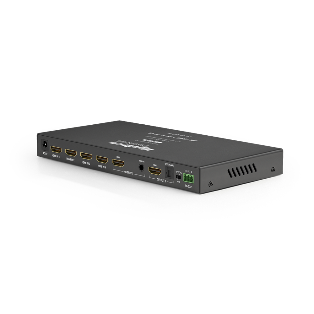 AUDIO POWERHOUSEThe EXP-MX-0402-H2 has the best of not only video in mind, but audio as well. Built to supply any sound system, the EXP-MX-0402-H2 can output analog audio to an amp or speaker system and 5.1 audio to an AVR. Furthermore, a gear selector on output 2 allows ARC to travel back from a smart display to a soundbar or AVR for the best audio and video experience possible!