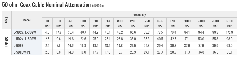 50 ohm coaxial cable