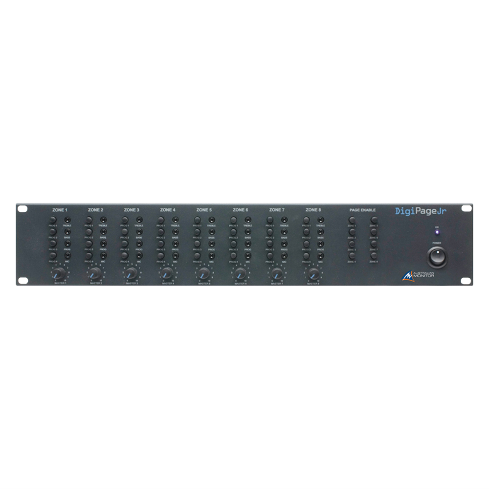 The DigiPage Jr starts as an 8 zone system and can be expanded to 16 zones.The DigiPage Jr is packed with excellent features and is a very cost effective solution for those applications who have neither the budget or the need for the more elaborate features of DigiPage.