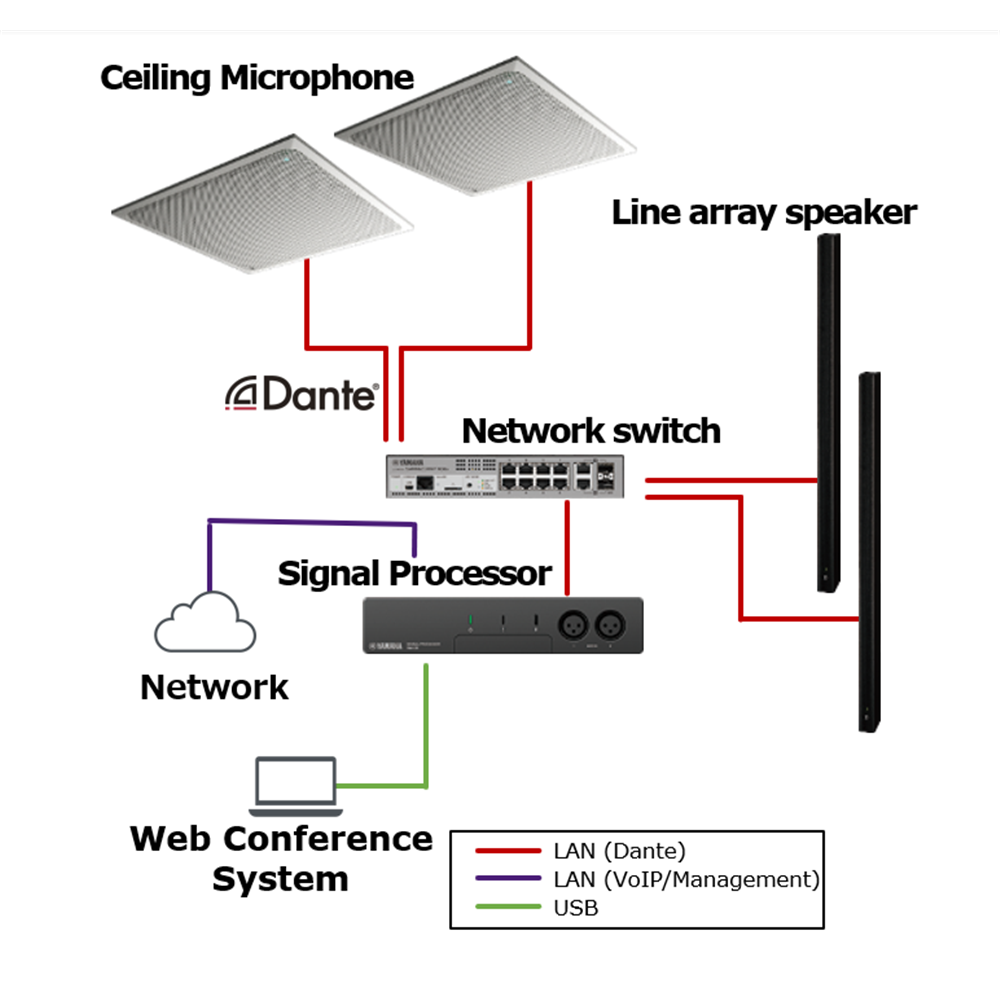 A ceiling array microphone equipped with unique audio signal processing technology that enables high-quality communication