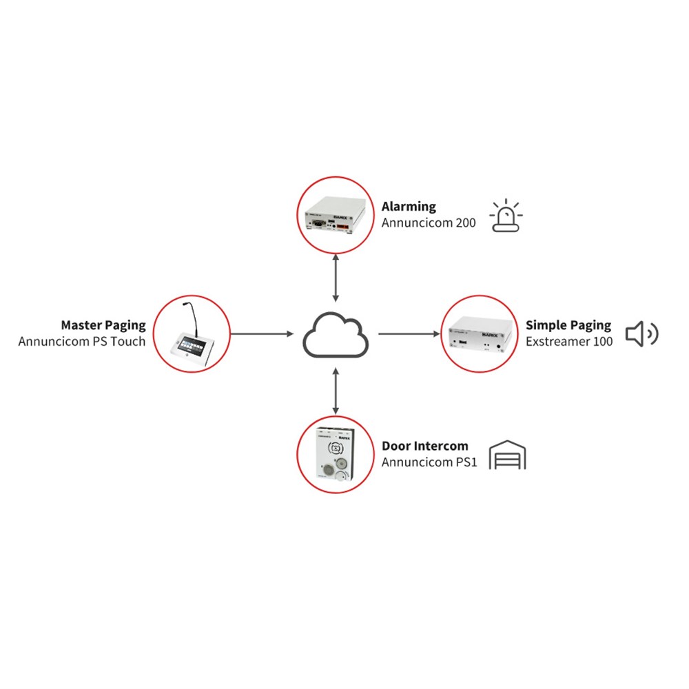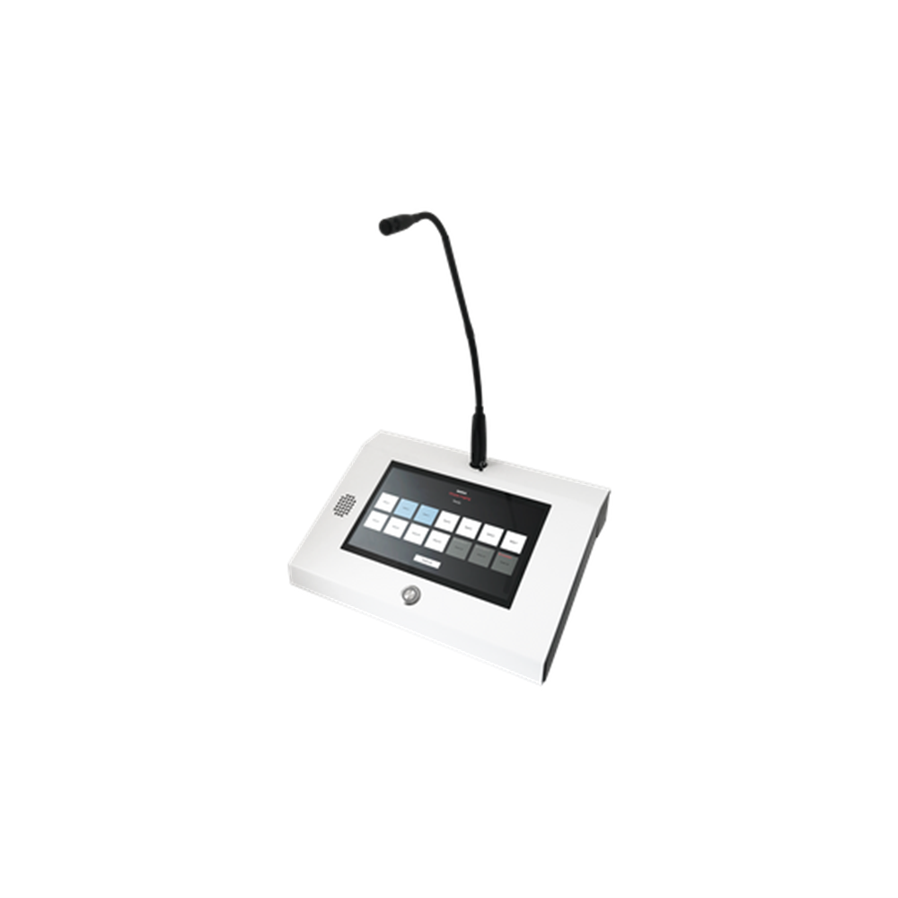 The PS Touch is equipped with a touch screen display, an XLR connected professional gooseneck microphone and a built-in speaker. Optional flash memory for stored messages and announcements is available. It replaces the PS 16. Annuncicom PS Touch is delivered with Barix Simple Paging Master station firmware. Additional firmware support on request.