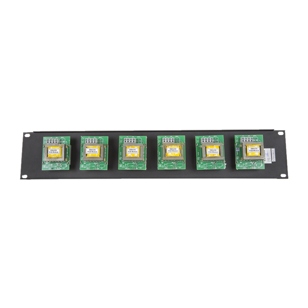 100 Volt line, 6 x 25 watt attenuator mounted on a 2RU Rack Panel.