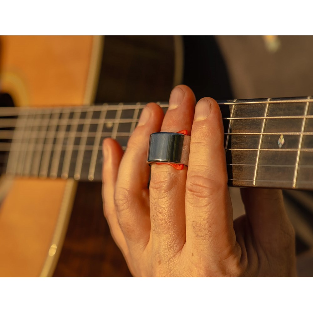 Thanks to this innovative slide ring, you can play four-finger chords, four-finger scales, bar with your pinky and ring finger, but still have the option to slide whenever you want to!