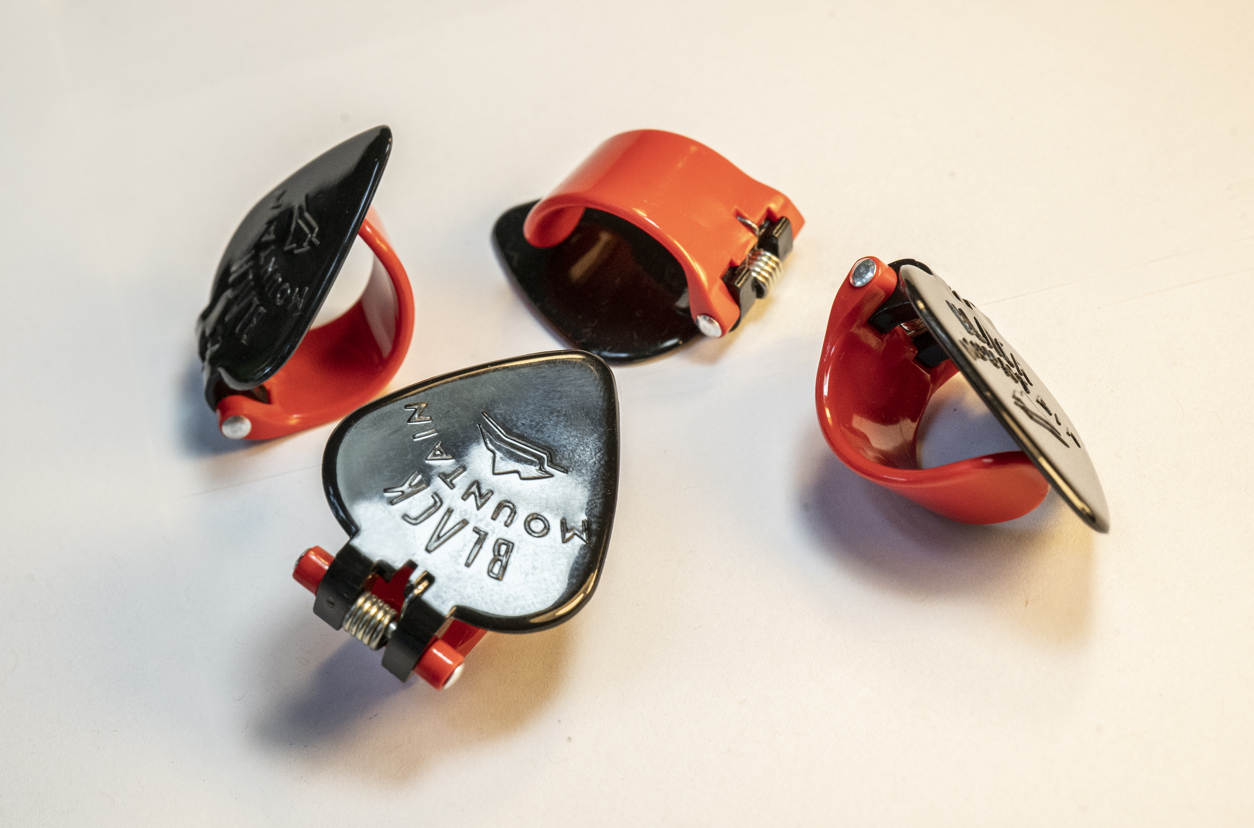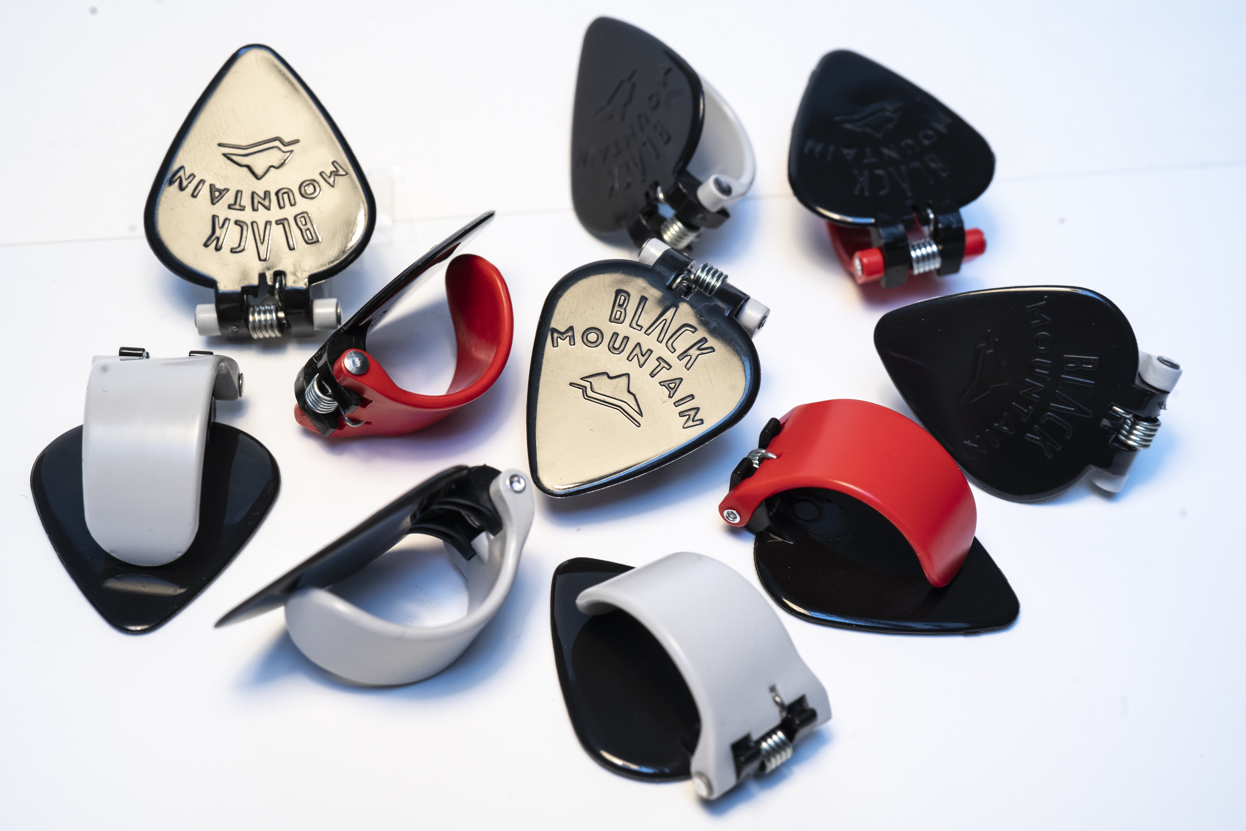 BLACK MOUNTAIN GUITAR PICKS The Black Mountain Thumb Pick is a boutique thumb pick, also the first in the world to use a spring. This patented technology offers several advantages over traditional thumb picks: The spring allows the pick to be flexible, so it feels like a regular guitar pickThe spring clamps the thumb ring around the player’s thumb to create a perfect balance between comfort and stability Invented by Cole McBride, a full-time guitar teacher who was looking for the perfect pick for his students as well as himself. After playing hundreds of different picks, he decided there was room for innovation, and set out to invent a new kind of plectrum. Cole spent a lot of time experimenting with different designs, until the idea of a spring came to mind. The Black Mountain thumb pick is built for musicians who enjoy playing with their fingers (fingerstyle) but also enjoy playing with a pick (flatpicking). Players love the Black Mountain Pick because it feels like a regular guitar pick and also a traditional thumb pick.
