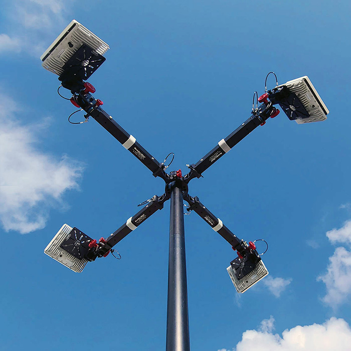 BlueSky Mast Systems, known for their patented tripod based, sectional mast design, can be packed down into a smaller footprint than traditional telescoping mast and require no additional support structures such as vehicles, trailers or shelters for deployment. All BlueSky Masts utilize interlocking mast sections made from a lightweight, aerospace grade Aluminum alloy that has twice the yield strength of traditional alloys giving it a distinct advantage over composite mast systems.