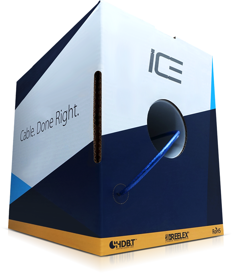 ICE CABLE SYSTEMSEASY TO USE INSTALLATION CABLING SYSTEM. ICE Cable Systems offers a selection of speaker, network and microphone cables. A specialist in premium low-voltage wire and cable products, ICE Cable Systems products are ideal for residential and commercial audio visual (AV), alarm and security, electrical contracting, and data centre applications. Better Box. Better Pull ICE Cable Systems’ secret is the Reelex licensed box design. Combining the big mouth payout (BMP) box with REELEX Coiling technology, ICE delivers the best pulling experience available to installers. Designed with a large four-inch payout hole, the box is constructed using 24kg burst-test cardboard, and reinforced handles, and is water resistant.With figure eight coiling, this tangle free technology makes an installers life easier.