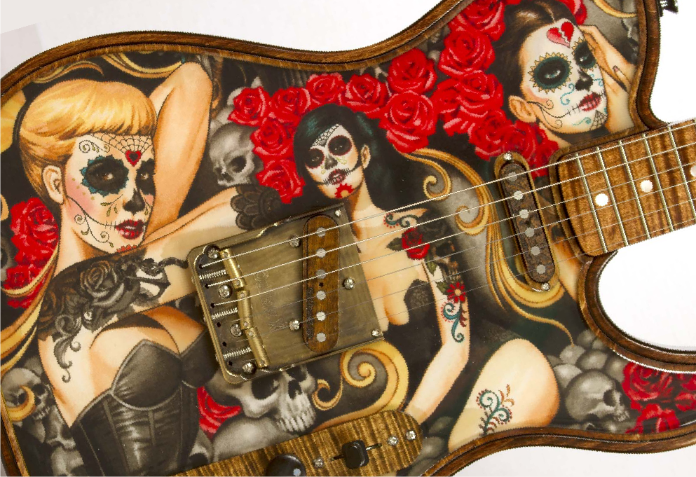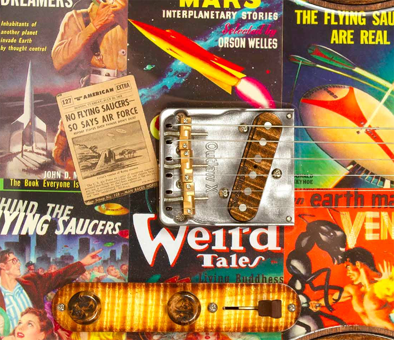 The Maverick Pro range of electric guitars are one-of-a-kind creations that incorporate vintage wood, skins, images, graphics, Crystal Tops, and almost anything you can imagine. Maverick Pros are designed to allow the player to create an instrument that is as unique as they are.Handcrafted and designed by WWGC, these guitars feature a chambered basswood body for an incredibly light weight (under three kilograms), great acoustic volume, and tone galore. WWGC Speed Necks are made from Canadian Maple with a soft V profile, compound radius and a speedy Tru-Oil finish. This neck sits in your hand like it was made for you, which it is. The Maverick Pro guitar top is designed to be customised, with many different tops to choose from or you can work with the Walla Walla team to create your own design. Some of the tops in the range are able to be changed out to create multiple tops for your guitar, depending on your mood and requirements.