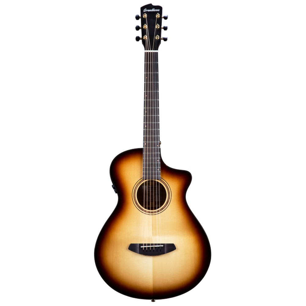 Breedlove’s small body guitar, delivering a surprisingly clear, crisp, loud sound. It’s 12-frets to the body design make it a joy to play. Extensive Sound Optimization™ engineering has resulted in a body shape that has a bigger sound and is more comfortable to play than a traditional parlor.