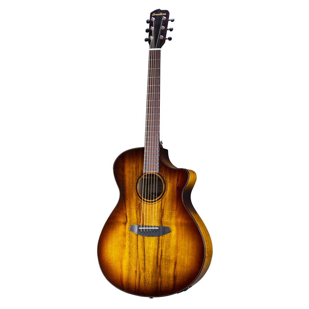 Go Exotic, sustainably! Breedlove has long specialized in offering intriguing alternative tonewoods, introducing, for example, hauntingly figured Oregon myrtlewood to the guitar world 25 years ago. The Pursuit Exotic S Series—featuring TUSQ nuts and saddles and Breedlove’s earth-conscious, sonically superior EcoTonewood technology—allows you to affordably experience the pure, nuanced sound and striking visual beauty of exotically alluring myrtlewood, koa and cedar. All four of Breedlove’s revolutionary body shapes are available in a popular all myrtle configuration, with a stunning gloss Tiger’s Eye finish. Specialty instruments like nylon string, 12-string and fretted/fretless bass models are available in elegant Natural and Amber tones. Side-mounted Fishman Presys I electronics (with built-in tuner, volume, contour and phase controls) make amplification a breeze.