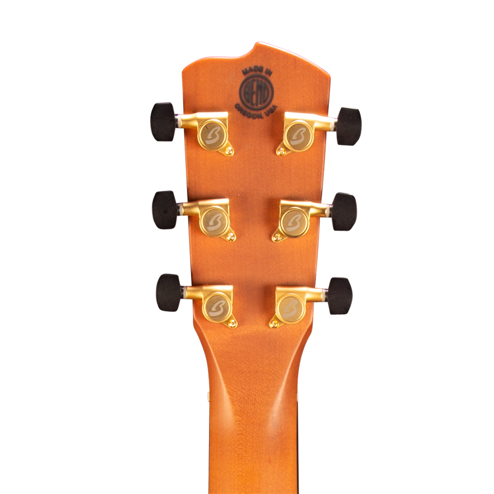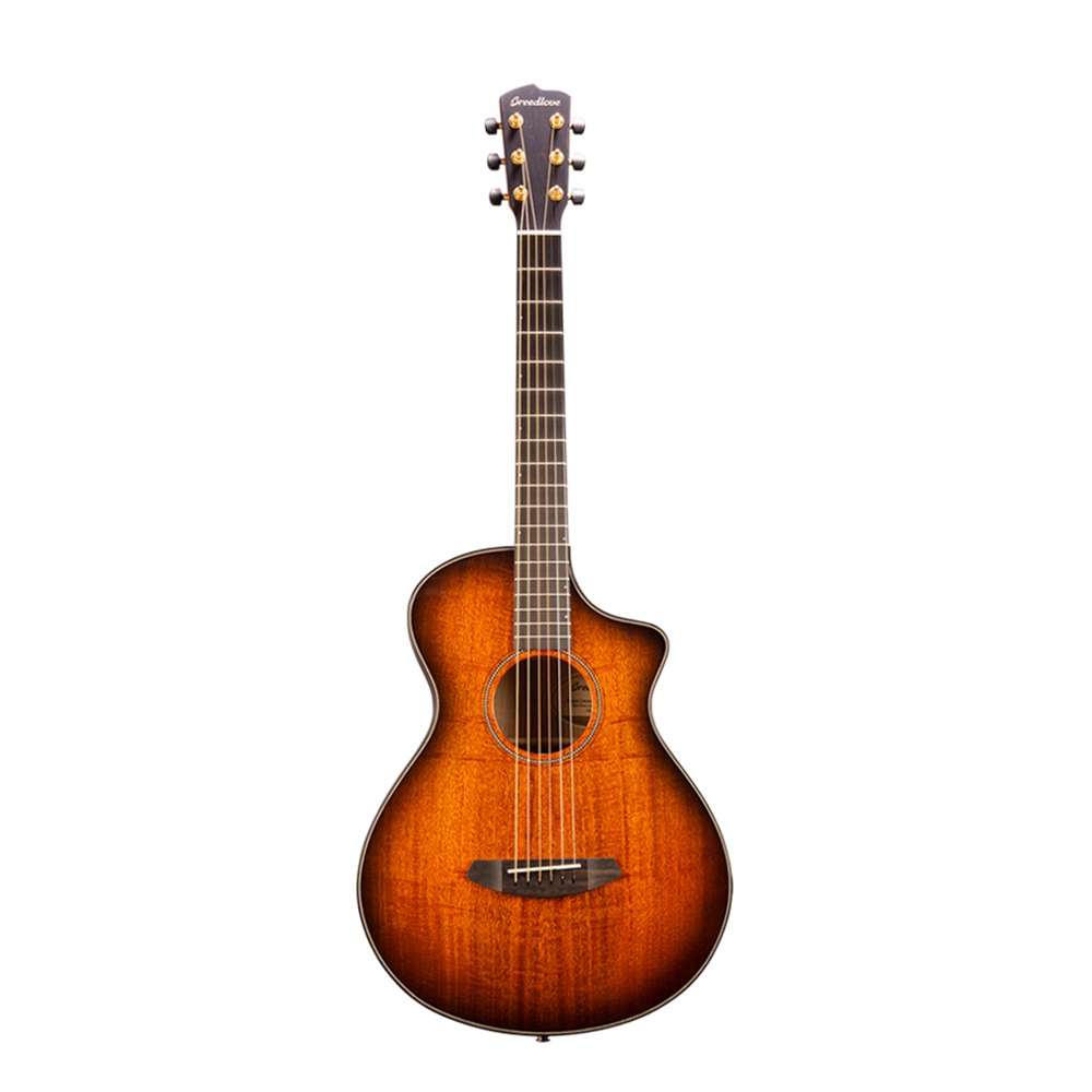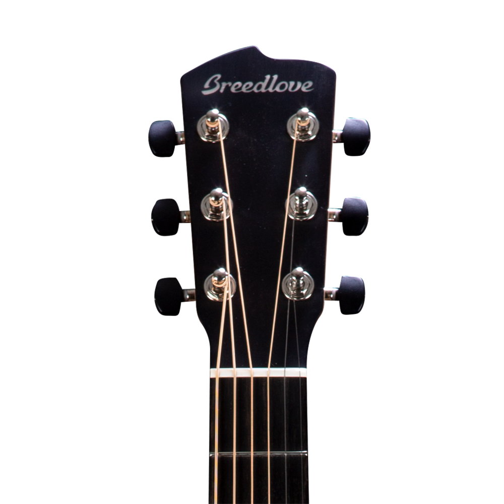 CONCERTINA BODY SHAPEBreedlove’s distinctive small body guitar delivers a surprisingly clear, crisp sound, and its short scale 12-fret design makes it a joy to play. Extensive Custom Shop engineering and experimentation has resulted in a modern shape that has a bigger sound and a more comfortable profile than a traditional parlor model.