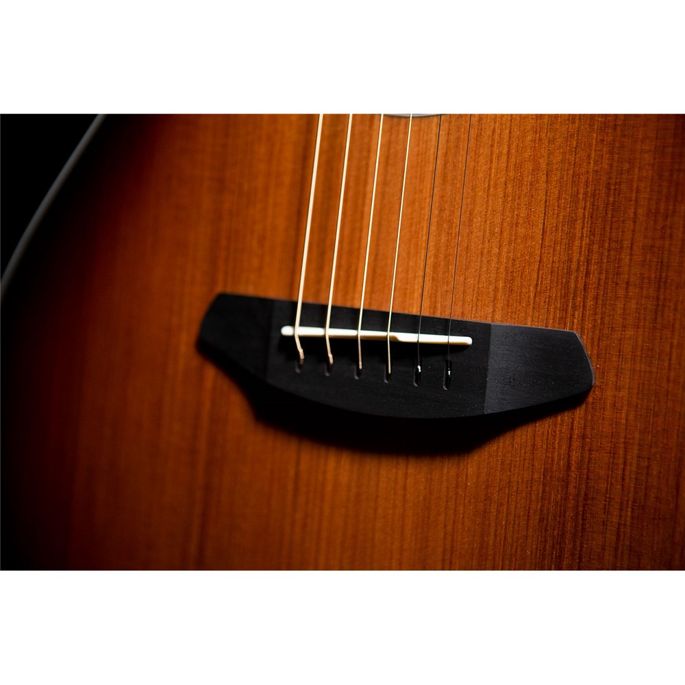 EAST INDIAN ROSEWOOD BACK & SIDESThe familiar scooped sound profile of a classic dreadnought comes largely from East Indian rosewood, which emphasizes round bass tones and clear trebles, leaving a valley custom made for the human voice. The same carefully sourced qualities offer presence and definition to smaller bodies, along with great dynamic range.