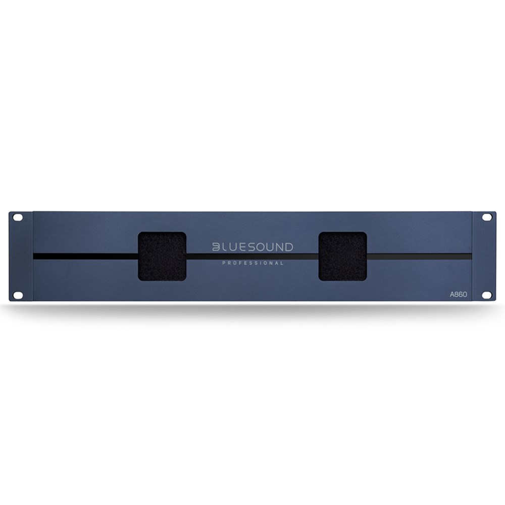 The Bluesound Professional A860 is a high quality 8-channel power amplifier for use in commercial installations. This 2U amplifier provides 50W x 8 at 8Ω, 60W x 8 at 4Ω or 120W at 8Ω per pair of channels in bridged mode. A standby mode can be triggered remotely or automatically for low power consumption when not in use. A global input can be assigned to multiple outputs and global and local output facilitate multiple amplifier installations. Thermostatically controlled fans ensure trouble-free operation in a wide range of conditions.