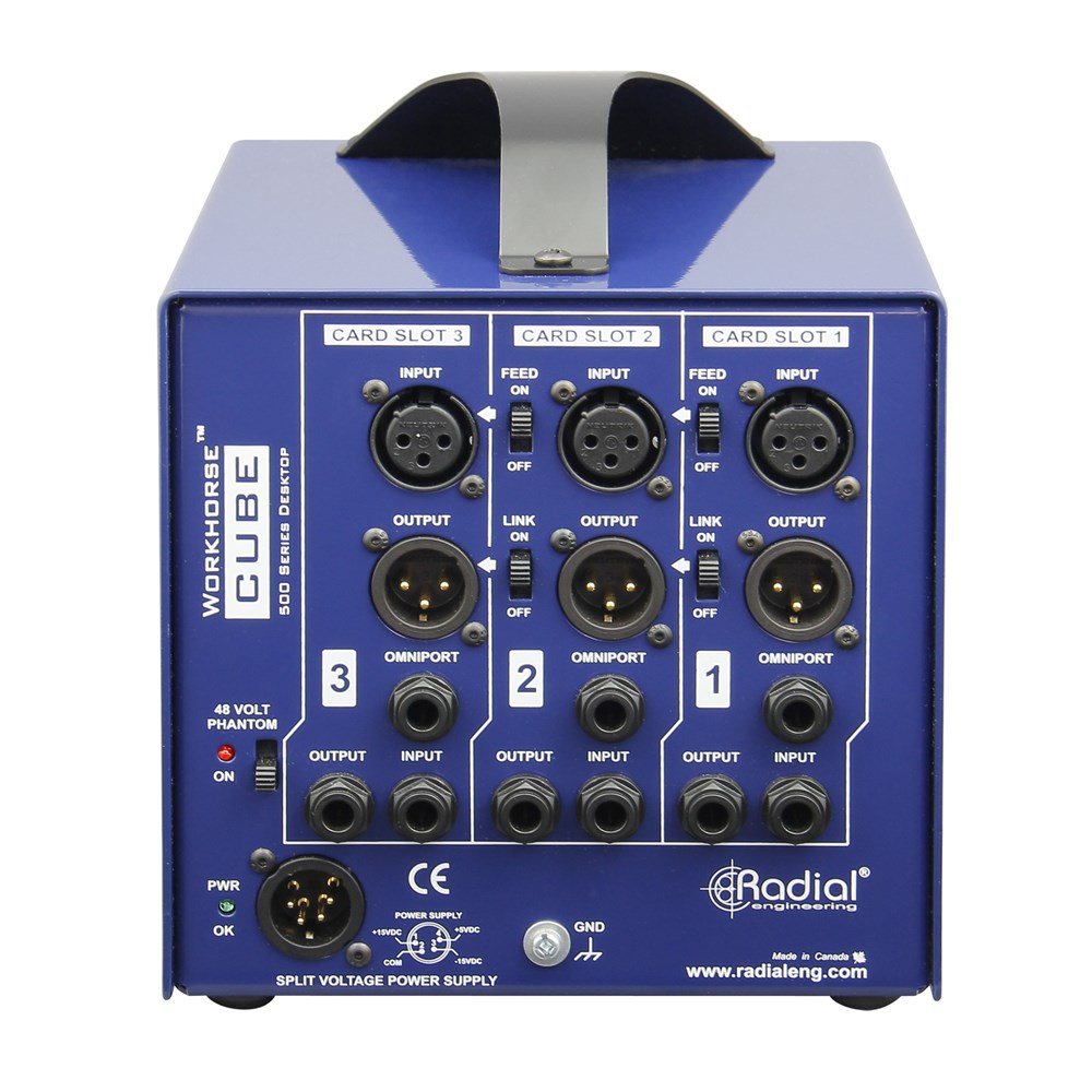 "The Radial Workhorse Cube is a unit designed to house three 500 series units and offers some nontraditional extra features (which seems to be a trend for Radial)."