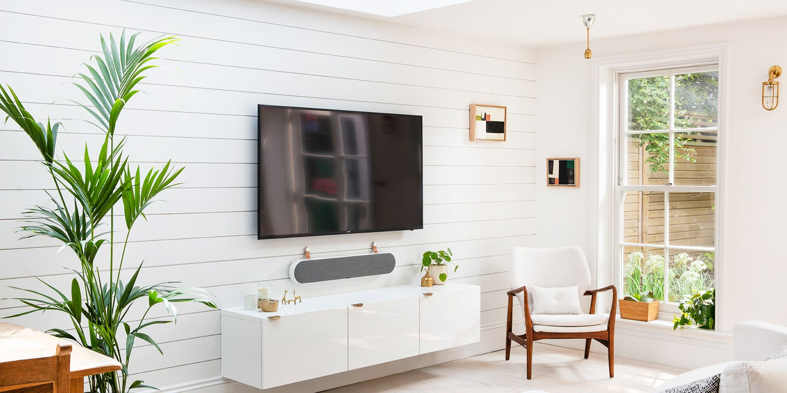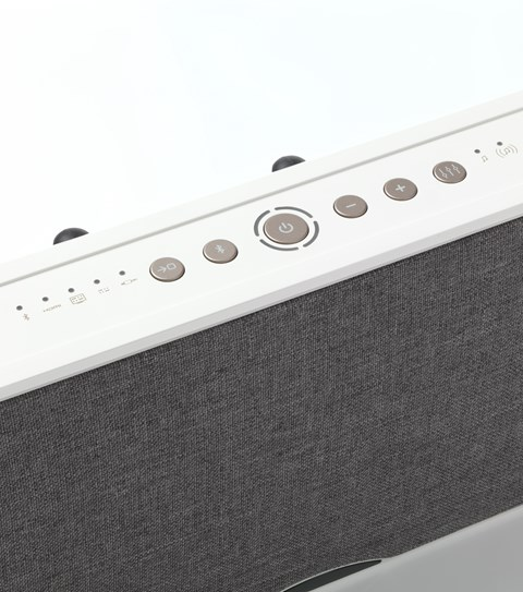 The front fabric for the KATCH ONE is picked for its very good acoustical properties, ensuring that the sound slips through without losing energy or details. Besides adding to the look and feel of the KATCH ONE, the fabric also helps the KATCH ONE fit in with the rest of the room.An important part of the visual design is the three stylish mounting solutions that ensures the KATCH ONE has a look for everybody.Featuring a chic, compact design, the wall-mounted leather strap truly completes the look and feel of the KATCH ONE. This solution elegantly hides the cables running from the TV to the KATCH ONE, keeping everything tidy, while the fabric front’s excellent acoustic properties ensure no audio detail is lost.If space is tight the keyhole mount on the rear of the KATCH ONE is the perfect solution.Placing the KATCH ONE on a shelf or on top of furniture is also possible with the use of the supplied real wood feet. These feet match the overall look and feel of the KATCH ONE, and serve to decouple the KATCH ONE from the placement surface, thereby limiting unwanted vibrations and elevating the KATCH ONE to give it a lighter look.