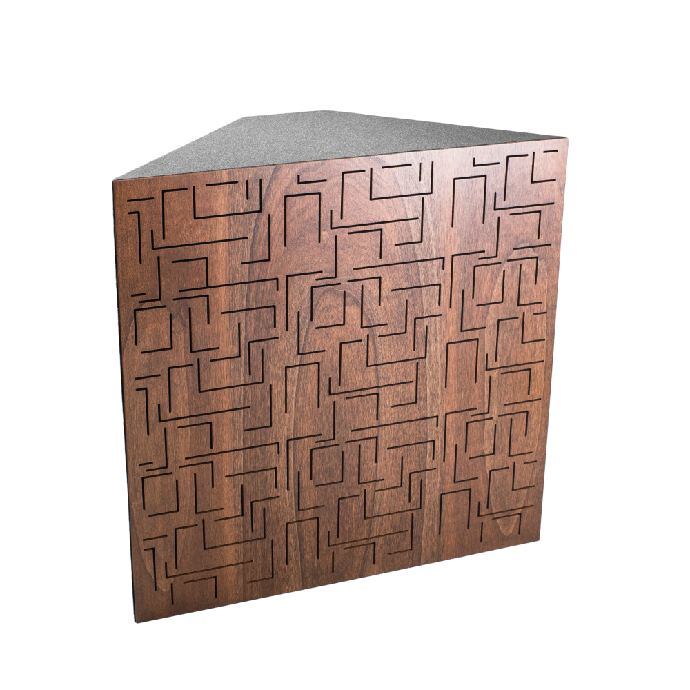 Decotrap Natur is a semi-covered low frequency absorber for controlled absorbing of low frequencies. Made from our USAP DT (Unique Sonitus Acoustic Polyester) foam, a heavy and high density polyester foam covered with a perforated plywood plate. Decotrap apsorption range is from 50-500hz, most effective between 60 and 250 hz. Fire resistant norm : FMVSS 302 <100mm/min