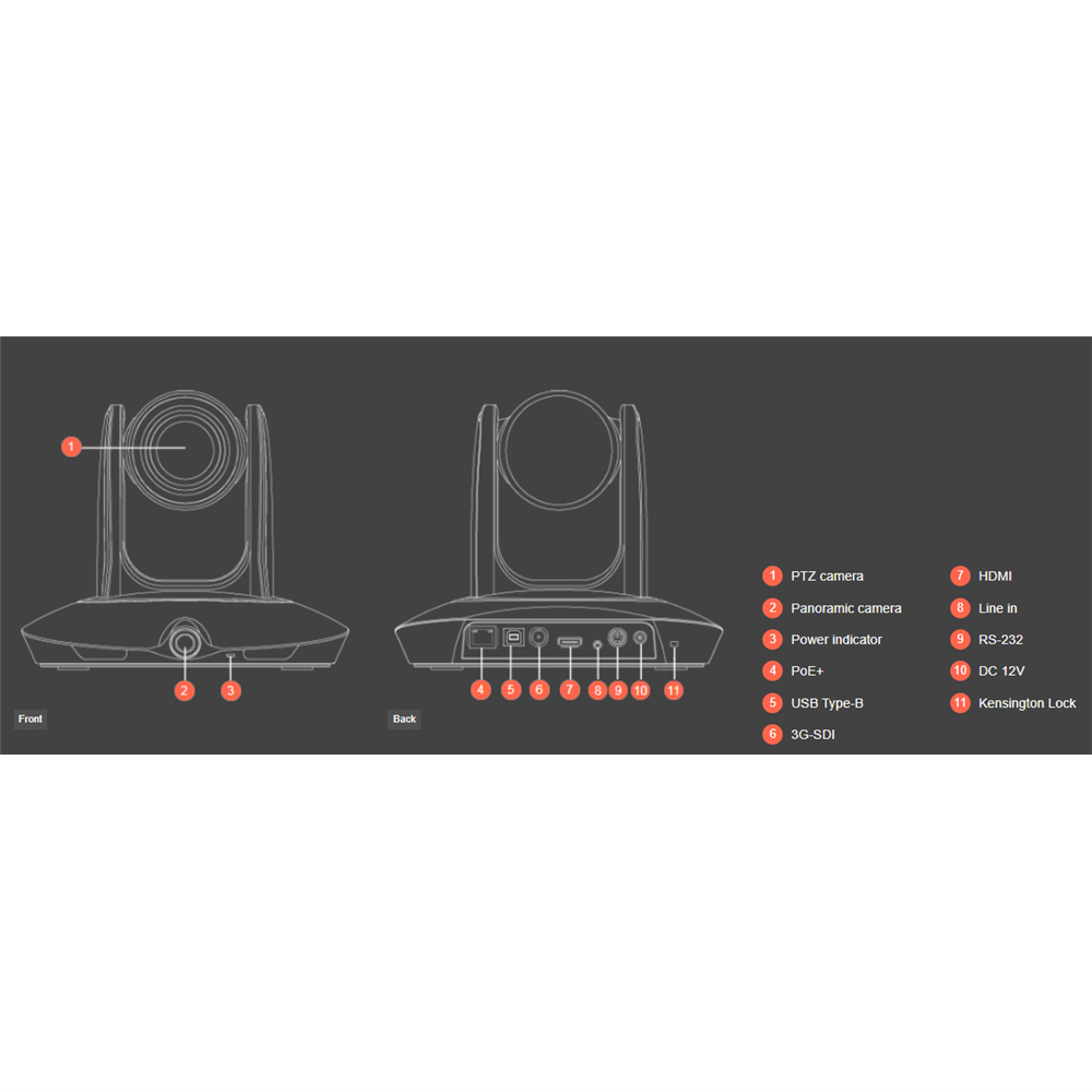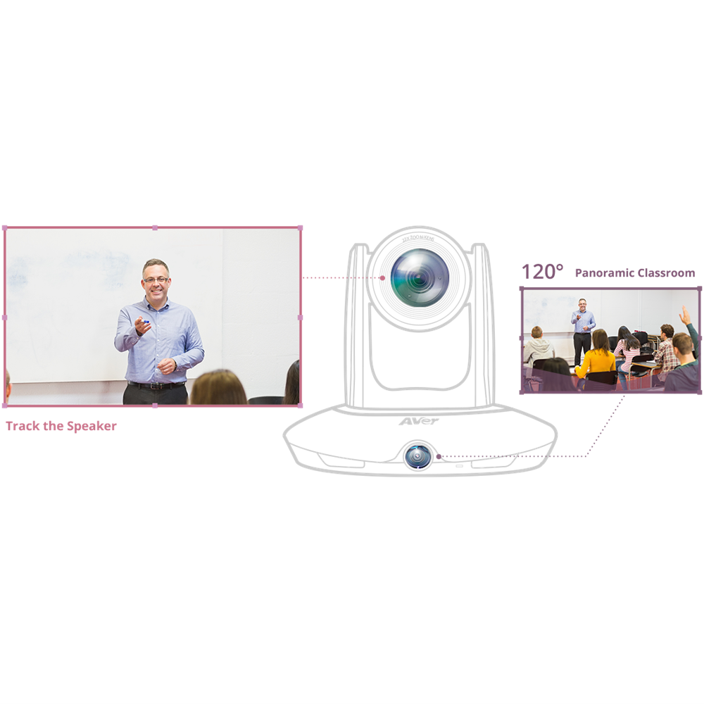 Make Tracking More IntelligentDual Lens Auto Tracking CameraThe PTC115+ equips 22X optical zoom and 120° panoramic FOV that provides Full HD 1080p video resolution. Perfectly suited to meet the needs of governmental institutions, educational organizations, and enterprises, the PTC115+ is the affordable solution for courses and lectures, keynote speeches, and employee trainings. Share more with your audience through real-time streaming; with no operator required and easy-to-use user interface, you can reduce costs and achieve limitless distance learning.
