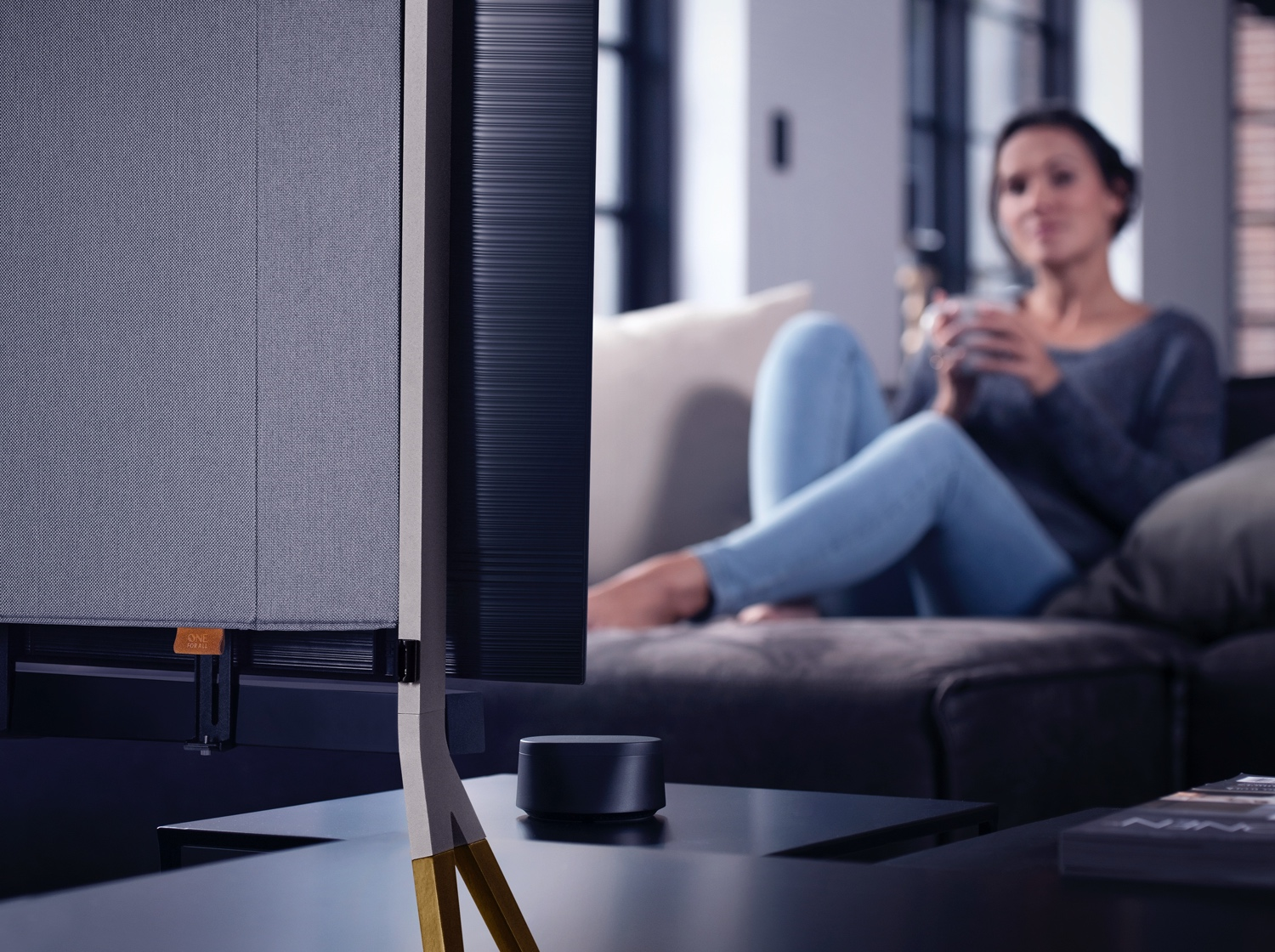 A dual sided magnetic fabric cover ensures a sleek look, keeping all your devices out of sight making the Falcon a well-thought out piece of interior design furniture.