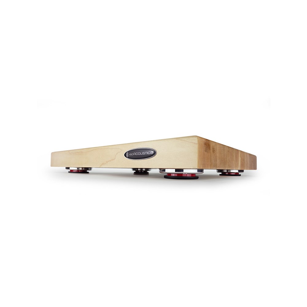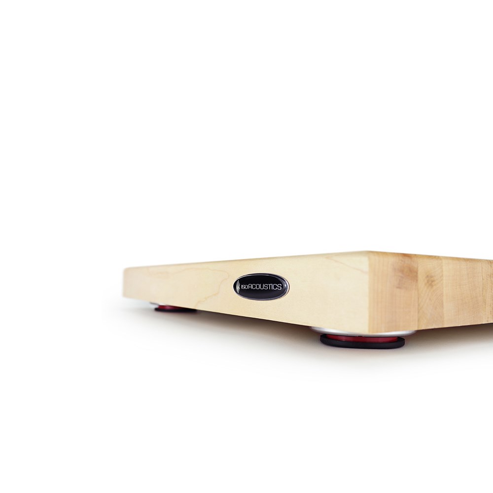 The DELOS 1815M1 Isolated Maple Butcher Block from IsoAcoustics combines the mass of a thick butcher block with IsoAcoustics award winning isolation to provide a low noise floor by eliminating the effects of structure borne vibrations. The DELOS 1815M1 is 18” (455mm) Wide x 15” (380mm) Depth x 1.75” (45mm) Thick and has a weight capacity of 65 lbs. (29.5 kg). This model is also available in Walnut (Model 1815W1)