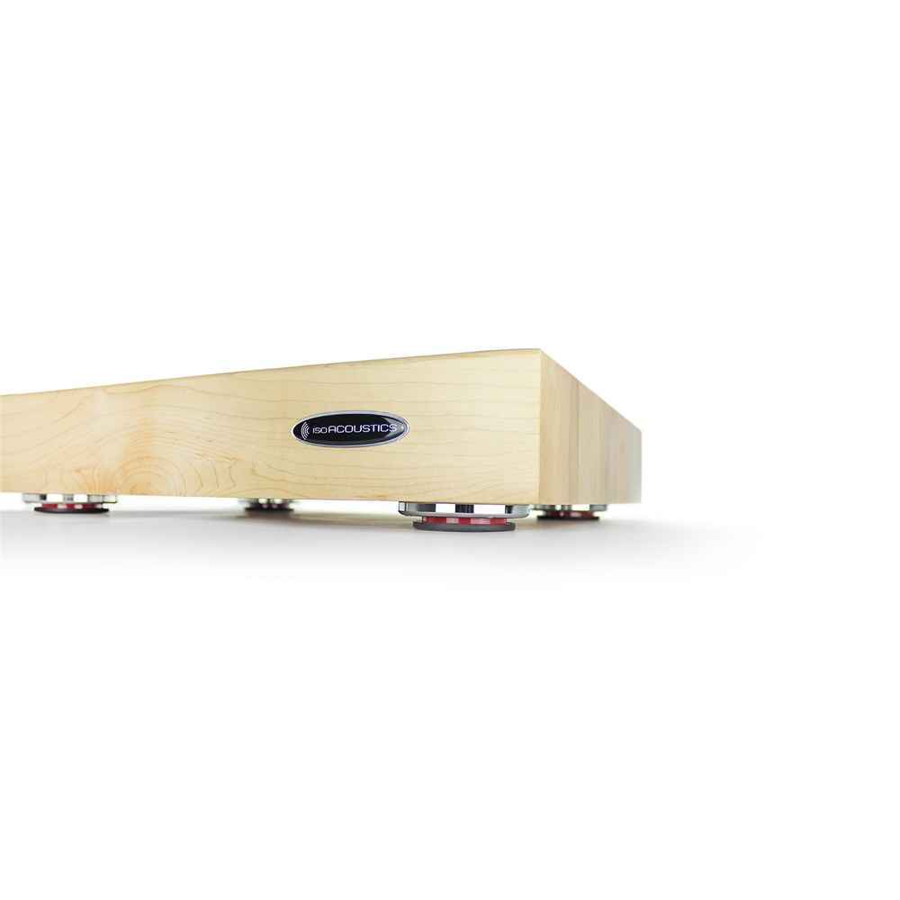 The DELOS 1815M2 Isolated Maple Butcher Block from IsoAcoustics combines the mass of a thick butcher block with IsoAcoustics award winning isolation to provide a low noise floor by eliminating the effects of structure borne vibrations. The DELOS 1815M2 is 18” (455mm) Wide x 15” (380mm) Depth x 3” (76mm) Thick and has a weight capacity of 55 lbs. (24.9 kg). This 3” (76mm) model has an edge in performance over the 1 ¾” (45mm) thick model because of the additional mass. Also available in Walnut (Model 1815W2).