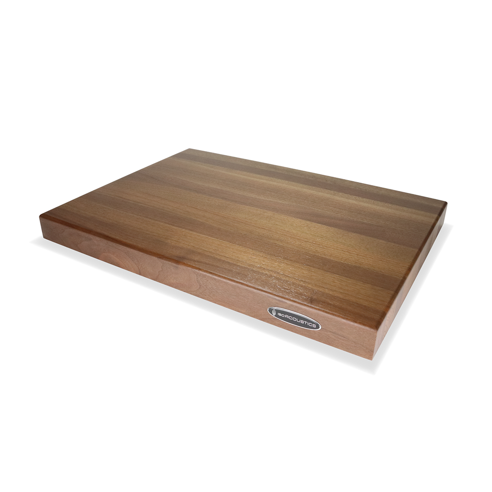 The DELOS 2216W1 Isolated Walnut Butcher Block from IsoAcoustics combines the mass of a thick butcher block with IsoAcoustics award winning isolation to provide a low noise floor by eliminating the effects of structure borne vibrations. The DELOS 2216W1 is 22” (560mm) Wide x 16” (405mm) Depth x 1.75” (45mm) Thick and has a weight capacity of 100 lbs. (45.4 kg). This model is also available in Maple (Model 2216M1).