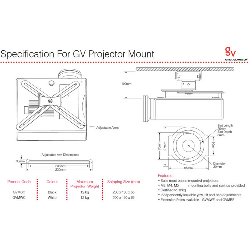 GV-GVMBC - Direct to Ceiling Projector Mount - Black