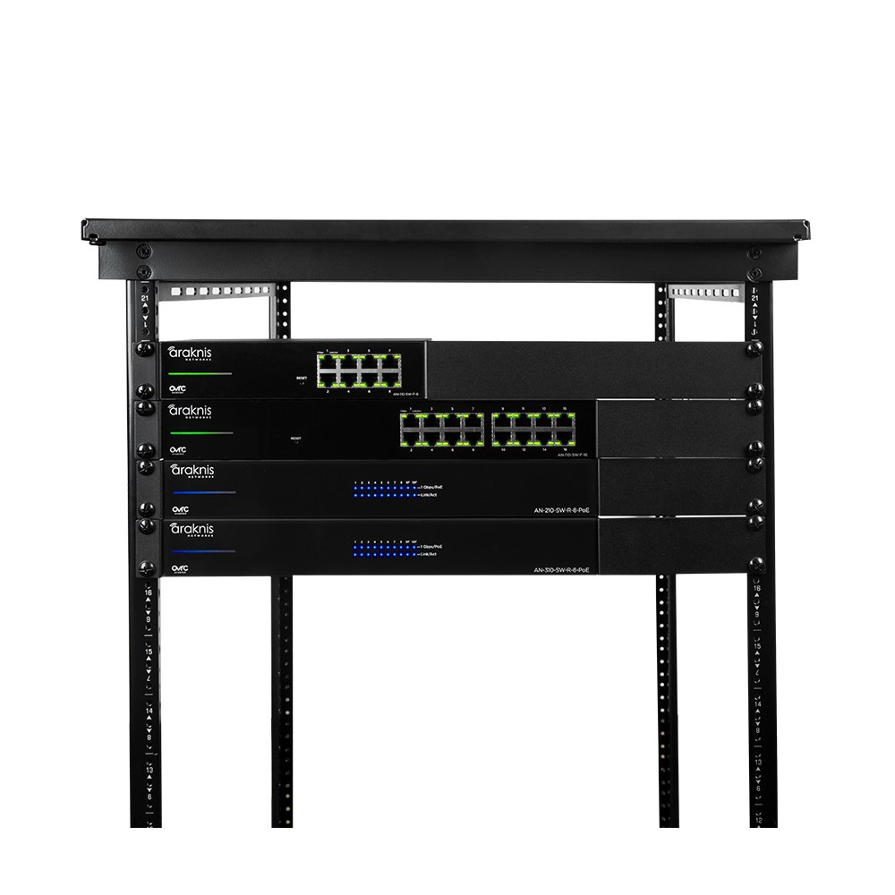 Easily mount your Araknis switch in any rack. These left-justified rack ears are designed to align the switch LEDs on the left side of the rack, making for a sleek design.