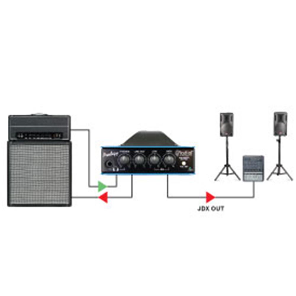 Connect the JDX output from the Prodigy to the PA system and in-ear monitors. Eliminating the microphone delivers a more consistent sound every night.