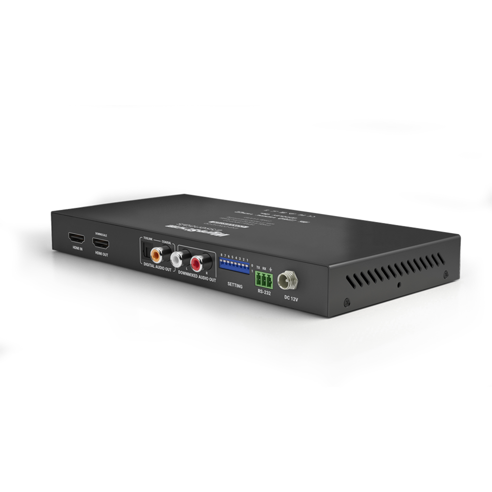 AUDIO DOWNMIXINGPowerful audio capabilities allow up to 7.1 Dolby True HD and DTS-HD signals to be downmixed to stereo RCA for multi-zone amplifiers. Audio can even be downmixed and de-embed simultaneously through the stereo and digital outputs.