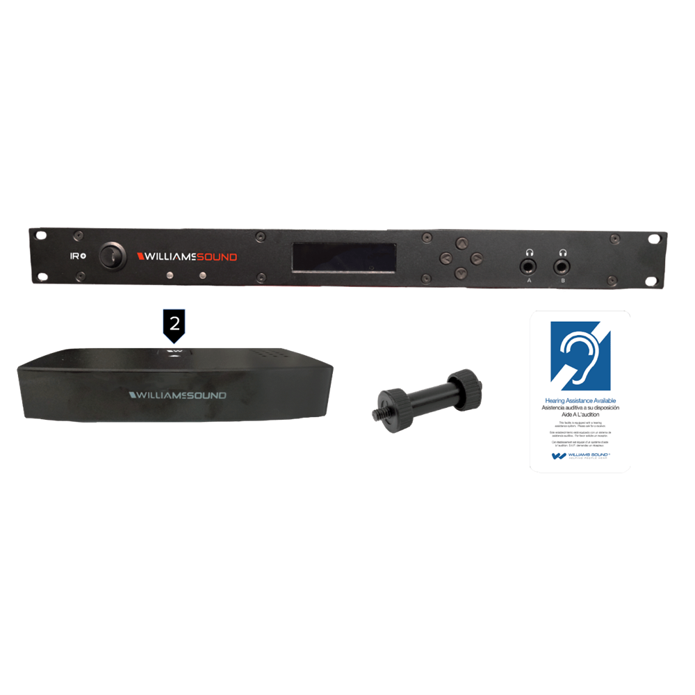 IR SYSTEMSIR ME2IR+ system features with two emitters, bracket and ADA sign.