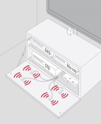 The One For All remote control extender is the perfect solution for controlling your infrared AV devices inside a closed cabinet.