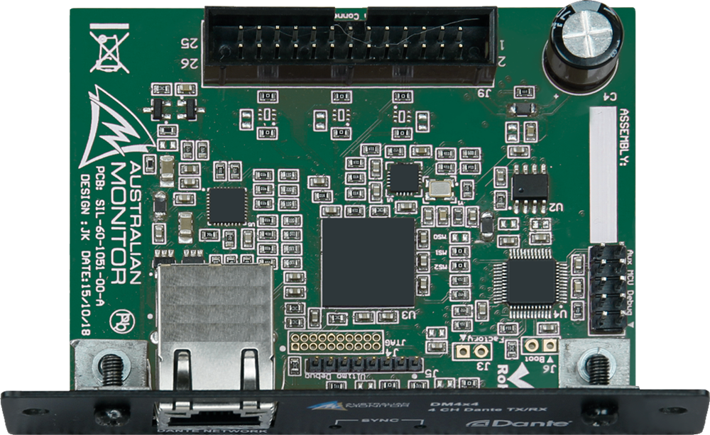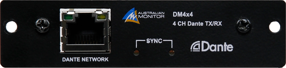 Provides 4 inputs channels from a Dante network which can be routed to any amplifier output channel.