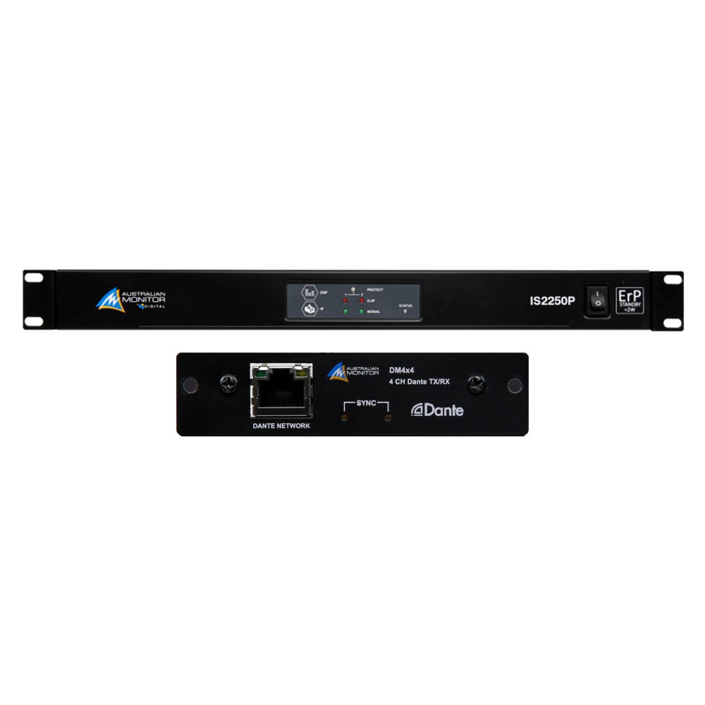 • IS2250P + DM4x4 - 2 inbuilt line level inputs plus expansion slot of 4 Dante Inputs and 4 Dante Outputs