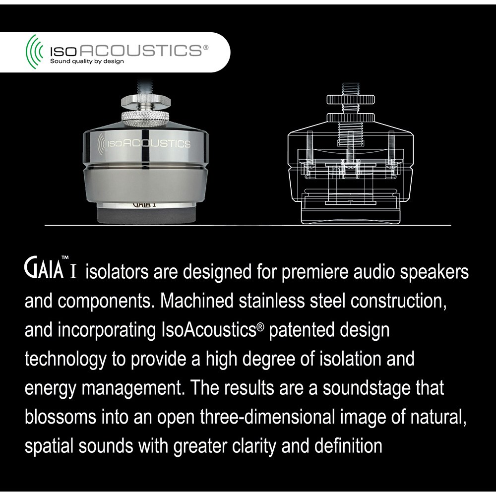 PATENTED ISOLATION TECHNOLOGYGAIA isolators are made from a high quality stainless steel construction, incorporating the IsoAcoustics design philosophy that combines precision and a passion to deliver extraordinary acoustic results.