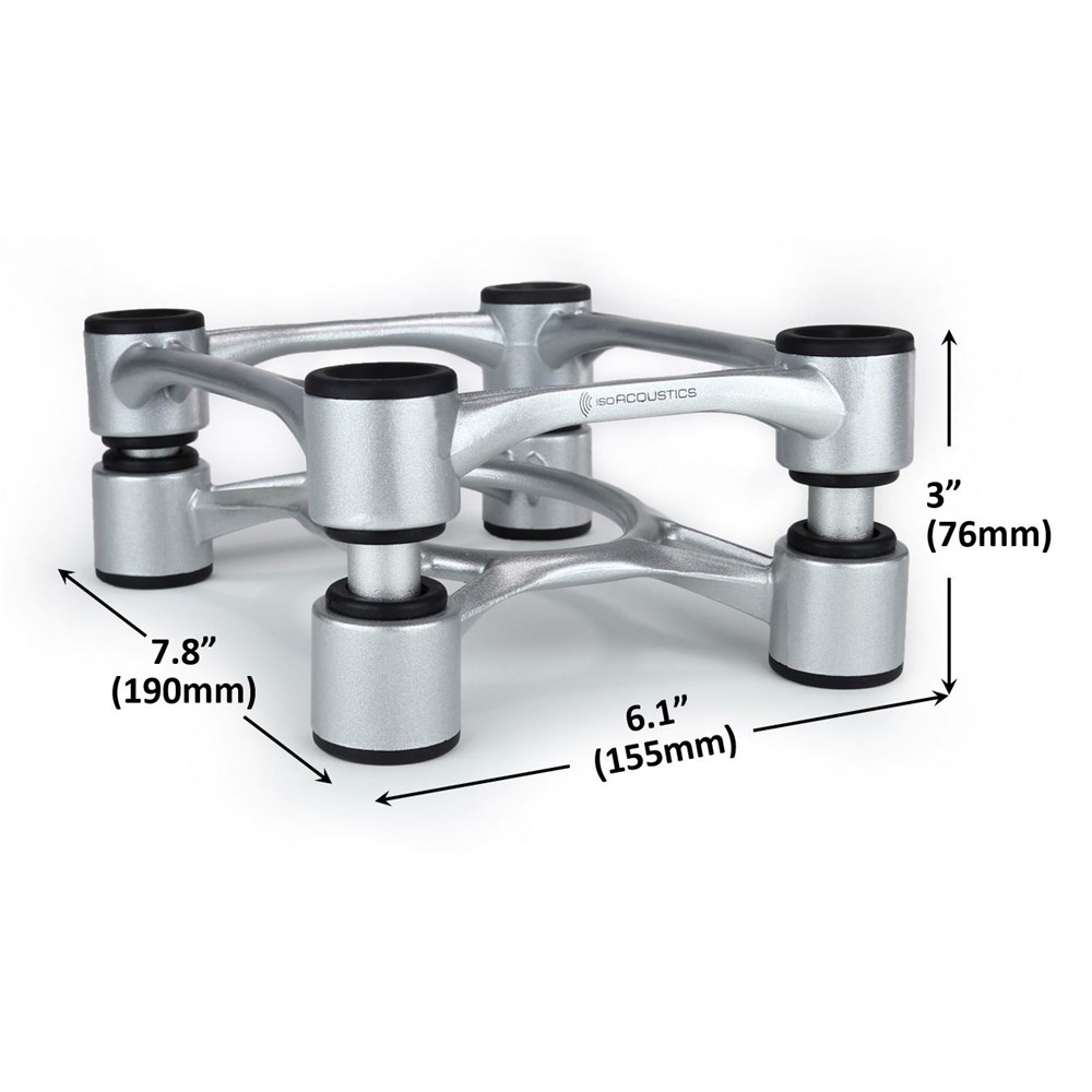 The isolators manage the energy of the speaker to reduce vibrations resonating through the supporting surface to eliminate dissonant sounds in the listening area or joining rooms.