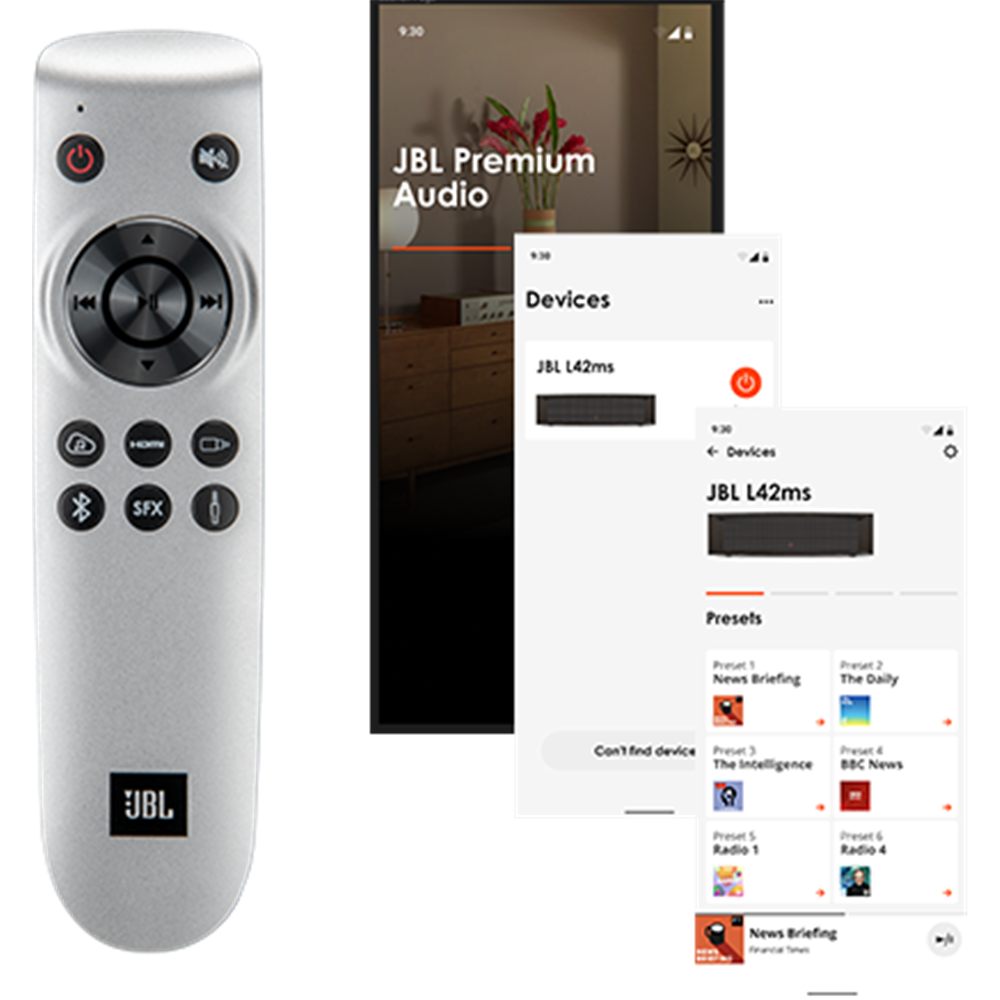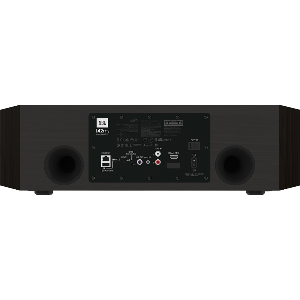 Audio connections include two sets of analog stereo inputs (one pair RCA style and one 3.5mm input) along with one HDMI-ARC for connection to a TV with similar connection for audio signal and control. Additionally, the L42ms can play streamed content via a wired or wireless network connection via Spotify Connect, Apple Airplay2™, and Google Chromecast or connect to a device directly via Bluetooth. All audio signals are routed through an advanced DSP engine where the content is carefully contoured and output to the speakers via a four-channel amplifier delivering 75W RMS to each woofer and 25W RMS to each tweeter. The total system’s 200W RMS amplifier power can be controlled via a touch panel located on the cabinet top panel, included Bluetooth remote, or from one of many music or automation apps. Designed and Engineered at the Harman Center of Acoustics Excellence in Northridge, California, the L42ms leverages JBL’s past 75+ years of loudspeaker and electronic designs to deliver truly outstanding sound and convenience while outperforming most traditional component hi-fi systems in the process. With its incredible combination of style, size, and performance, there is simply nothing like the L42ms Music System.