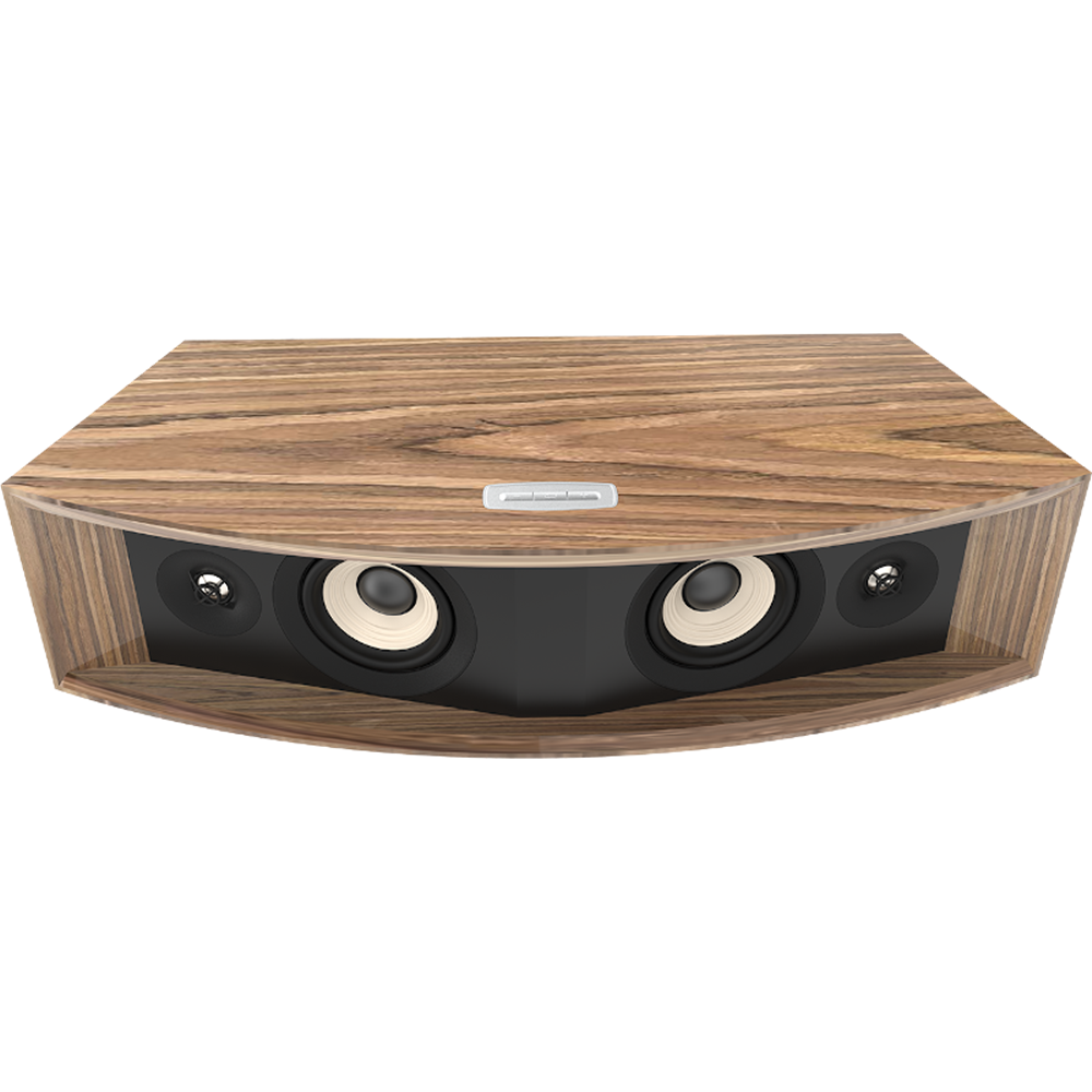 • Enclosure: Front-ported tabletop style cabinet available in black walnut or natural walnut furniture-grade wood veneer