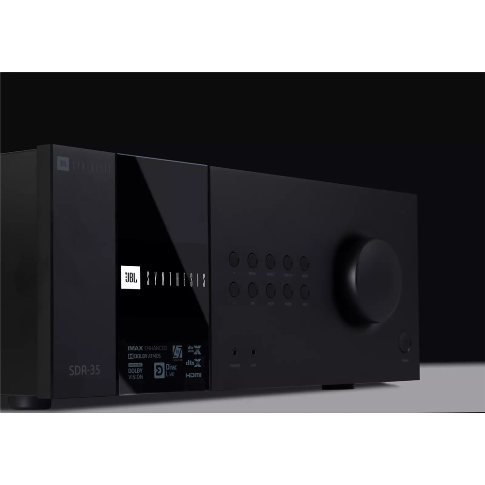 The JBL Synthesis SDR-35 is designed to ensure exceptional performance without compromise and offers an unparalleled feature set that puts it far ahead of the competition. It features full support for Dolby ATMOS, DTS:X, and Auro-3D immersive audio formats. DIRAC Live with Bass Control room EQ with JBL Synthesis system enhancements provides exceptionally accurate system tuning. A full suite of digital and analog connectivity is included along DANTE digital audio networking and HDMI 2.0b (4K Ultra HD) AV switching with support for Dolby Vision and HDR10+ dynamic video, plus IMAX Enhanced certification. Network and Bluetooth streaming are included with Google Chromecast built-in, Apple Airplay 2, Spotify Connect and Tidal Connect, plus it is Roon Ready with Hi-Res and MQA support. Seven channels of Class G amplification are included allowing the SDR-35 to independantly power systems up to 7.1 channels. Full external control allows for complete and easy system integration.