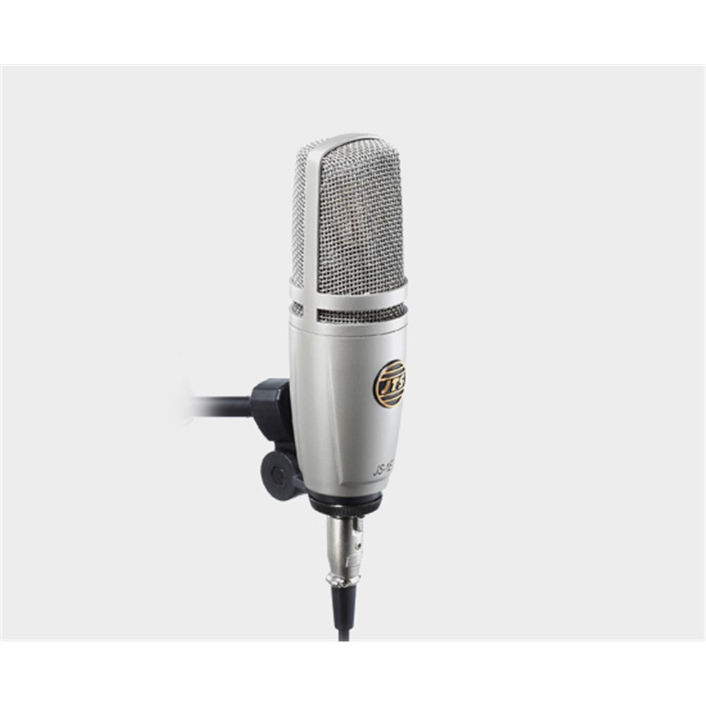 The JS-1E is an economic version of JS-1, but does not provide the PAD and LOW CUT function switches and circuitry of the JS-1 and does not include the spider type shock mount that is included with the JS-1.