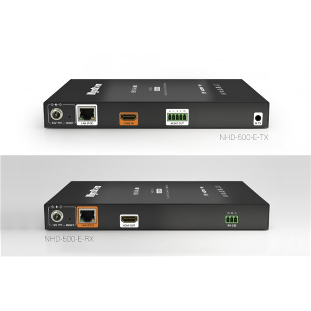 ESSENTIAL CONNECTIVITYRetaining only core functionalities, the 500-E’s remove Fiber & USB connectivity along with various control signal and audio outputs across both the encoder and decoder. This aims to offer flexibility for AV over IP applications that may not require advanced operations.INTEROPERABLEMix and match all 500 series components to better tailor to your system requirements. The 500-E’s are compatible with the NHD-500-TX and RX, NHD-500-IW-TX and NHD-500-DNT-TX. Choose which encoder and decoder makes the most sense for what you need to accomplish.4K60 ENCODINGCapable of encoding & decoding full HDMI 2.0 content. This includes 4K60 4:4:4 8bit and high dynamic range video including Dolby Vision, HDR10 & HLG up to 12bit 4:2:2 at 60Hz. All over a 1GbE network with ultra-low latency.VIDEO WALLSCreate captivating large format video walls with the ability to process up to 256 screens (16×16). Easily adjust for screen bezels to ensure the video is pixel perfect. The 500 series also allow you to create mosaic style walls with rotated screens!