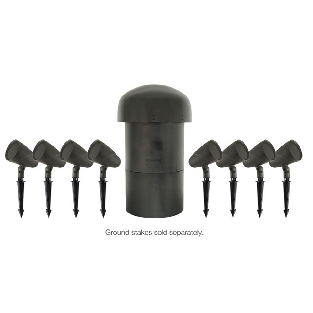 Sonance Landscape Series LS4T SAT systems configured for 70V settings allow for greater area coverage with a discreet footprint. These 4" speakers produce outstanding detail at any volume with smooth bass. As the in-ground subwoofer (12") emanates throughout the space, it supports the system's low frequencies creating a perfect balance of detail and punch. Each system includes a Sonamp DSP 2-750 MKII 70V amplifier with custom DSP settings to optimize the system for any outdoor space.