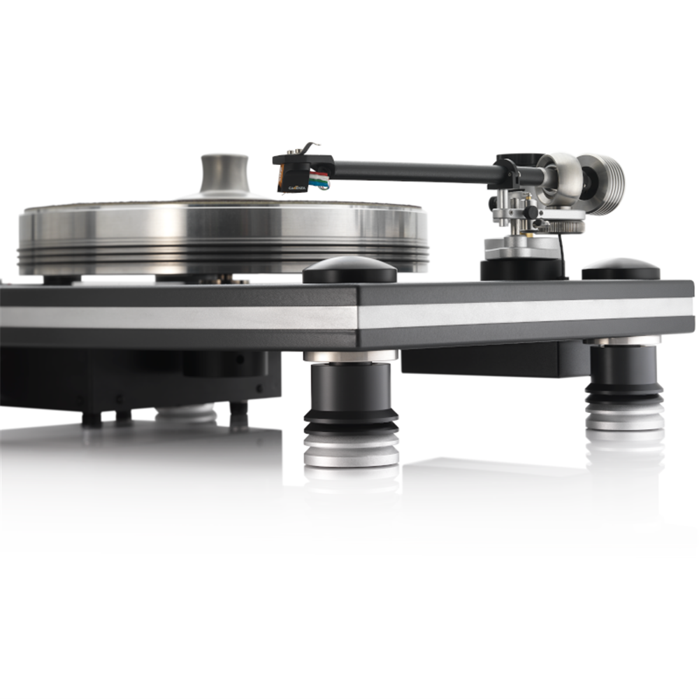 Uncompromised SupportTo maintain the accuracy of the recording, the chassis of the № 515 is supported by aluminum, vibration-damping feet, each with a polymer core. The platter, machined from 18 pounds of solid aluminum, rotates on an inverted bearing that guarantees maximum rotational accuracy. As a result, the № 515 minimizes interference from external vibrations, so you hear nothing but your music.