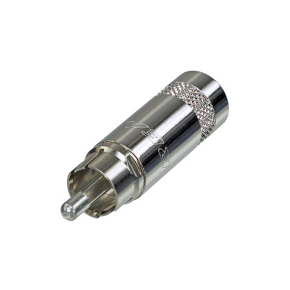 Heavy duty phono plug, cable clamp, nickel plated shell and contacts