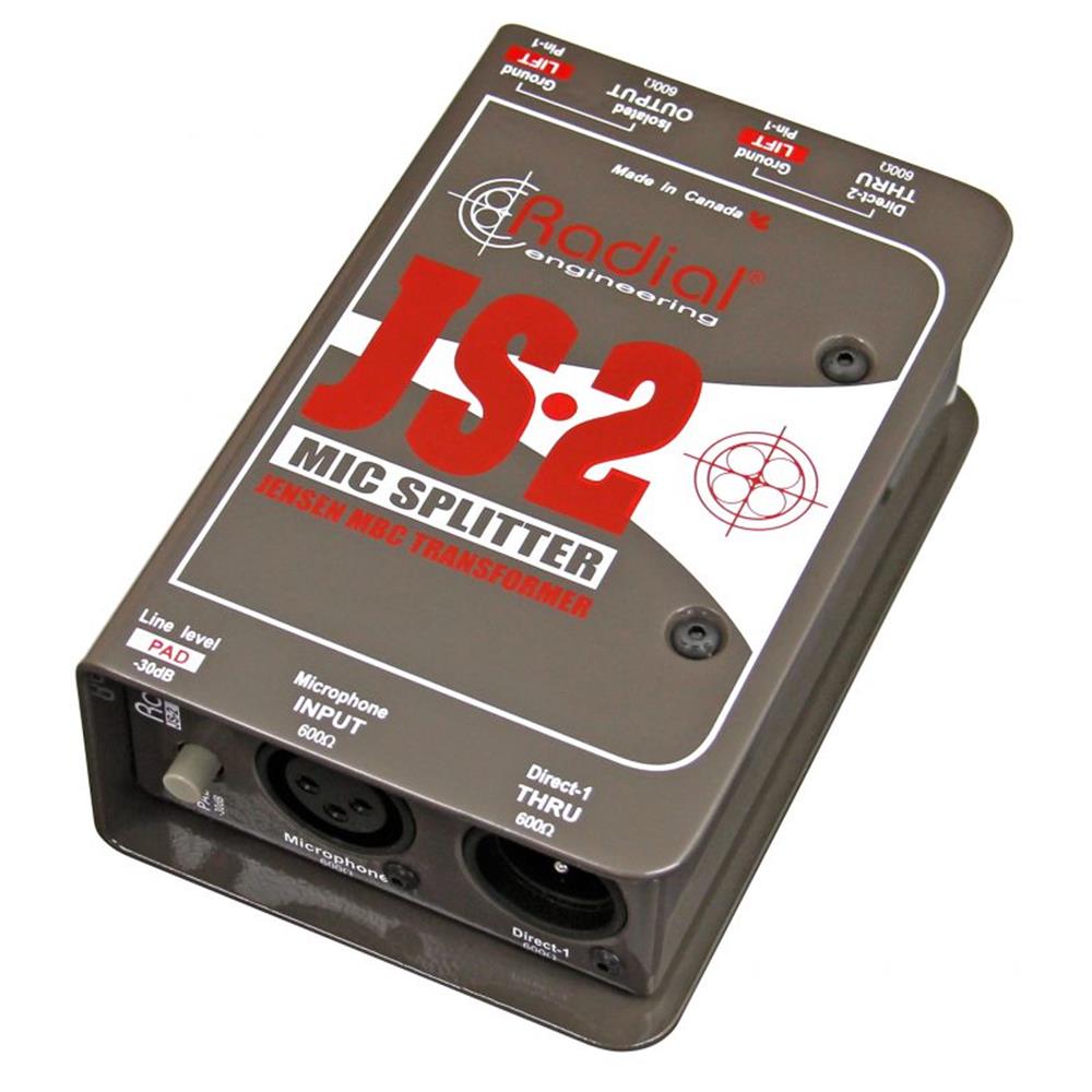 The JS2 is a professional mic splitter designed to split a single source to multiple destinations simultaneously without signal degradation or noise. A premium Jensen transformer inside provides galvanic isolation to eliminate buzz and hum from ground loops, while maintaining an extremely wide bandwidth with ultra-low distortion and phase shift. Ground lifts on the outputs help further reduce noise, while an input pad allows line-level sources to connected as well. Both the JS2 and the JS3 can be rack mounted for touring and installation purposes, with up to eight fitting in the Radial J-Rak.