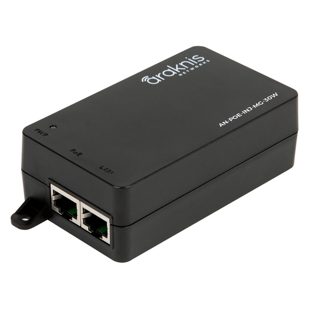 This Araknis Networks™ Multi-gig PoE+ Injector is the perfect accessory for connecting a PoE device to a non-PoE switch. Wireless Access Points, IP cameras, control touch pads, and more can be installed with ease thanks to a 30W power output that goes up to 330 feet with a whopping 2.5Gbps of throughput. Plus, this device features silent operation and built-in mounting ears that allow for maximum placement options.